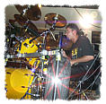 Rücken umher taumelt und später sogar mitten im Drumkit landet.